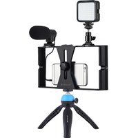 PULUZ PKT3095 Smartphone Vlog Live Streaming Video Rig Kit with Microphone + Tripod + Fill Light - Red