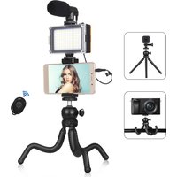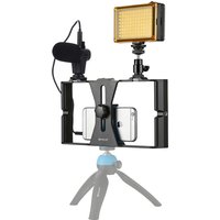 PULUZ PKT3132B Phone Holder Tripod Video Recording Stand Kit with Fill Light Microphone