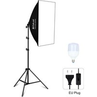 PULUZ PKT3134 2Pcs 50x70cm Softbox + 8x E27 LED Light Bulb + 2 x Tripod Stand Photography Kit Set – US Plug