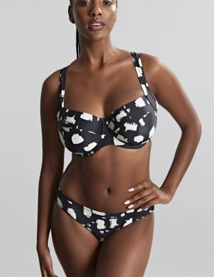 Create a striking look at the beach or pool with this Paloma swimsuit by Panache. It features a flattering non-padded balcony shape, with underwiring for support and uplift. The shoulder straps are built up to give a comfortable feel, and are adjustable for a personalised fit. This sophisticated piece is finished with a bold brushstroke print.
