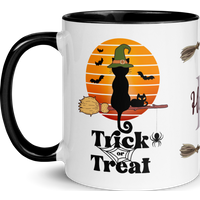 Personalized Monogram Coffee Mug 11oz | Trick or Treat Black Cat With Green Hat