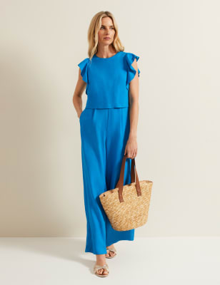 This Phase Eight jumpsuit is the perfect one-and-done piece for your next event. It's designed in a regular fit, with a flattering ruched bodice and a v-shaped neckline. A self-tie belted waist adds definition to the silhouette, while playful frill detailing gives the illusion of cap sleeves. This style fastens with a concealed zip and is fully lined for comfort.