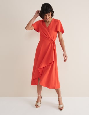 Phase Eight Women’s Belted Pleated Short Sleeve Wrap Jumpsuit – 8 – Orange, Orange