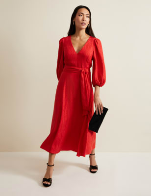 Take your occasionwear dressing up a notch with this jumpsuit by Phase Eight. It's designed in a regular fit with a flattering v-neck wrap front and a fabric belt at the waist. Pleated short sleeves and neckline add feminine appeal, while the wide legs create an elegant silhouette. This piece is complete with a discreet zip fastening at the back and is fully lined for comfort.