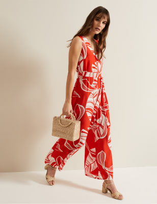 This elegant jumpsuit by Phase Eight is a stylish choice for party season. It's designed in a regular fit with a flattering belted waist and a wide-legged silhouette. The sleeveless bodice features a geometric cut-out at the back for a striking detail along with shirring for extra comfort.