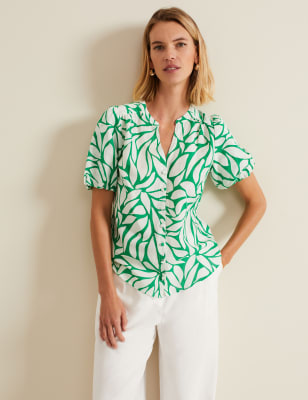 Phase Eight Women's Floral Collared Button Through Shirt - 10 - Green Mix, Green Mix