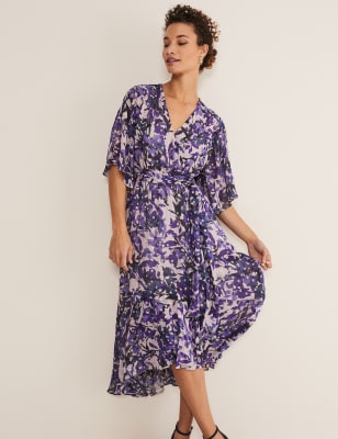 This shirred midi dress from Phase Eight is made from a lightweight floral fabric that drapes beautifully. It's cut in a regular fit, with short sleeves and a flattering v-neckline. A coordinated belt tie ensures a feminine silhouette. This graceful piece secures with a delicate button fastening at the back.