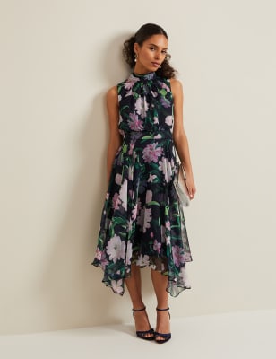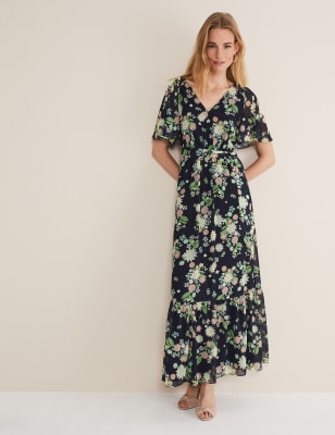 This wrap dress from Phase Eight will add an elegant touch to your wardrobe. It's made in a regular fit, with pleated angel sleeves and a flattering wrap bodice with a simple back-zip fastening. The feminine v-neckline complements the pleated A-line maxi skirt. A delicate tie at the waist and an abstract floral print on the skirt completes the look.