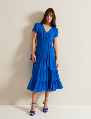 Create an elegant ensemble for smart occasions with this waisted dress from Phase Eight. It's cut in a regular fit, with a secure zip fastening at the back. A twist detail adds sophisticated shape to the halter neckline, while a belt provides adjustable comfort. Pleats add graceful movement to the flowing midi-length skirt.