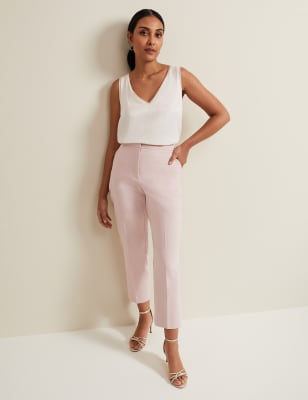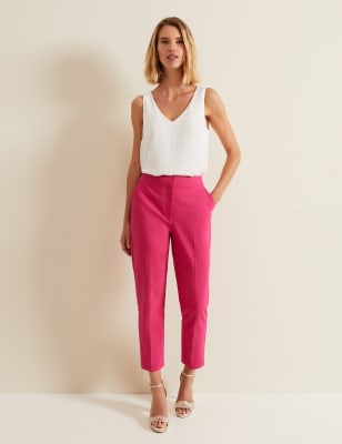 Create a sleek silhouette with these suit trousers from Phase Eight. They're cut to a comfy regular fit. The waistband is neatly pleated for a shaping effect and fastens with a concealed hook bar and a zip. The legs are slim and tapered, with neat pressed creases for a sharp finish.