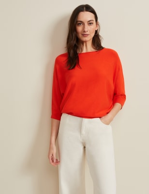 This elegant fine-knit jumper from Phase Eight will take you effortlessly from work to dinner. It's made in an easy regular fit, with a sophisticated slash neck. The three-quarter batwing sleeves add relaxed volume to the silhouette for a touch of laidback charm.