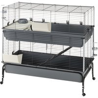 Please note: This product might take a little longer to arrive as it may be shipped from outside the UK. The steel Basic rabbit guinea pig cage is an excellent piece of basic equipment and provides a spacious home for your rabbit or guinea pig. The hay rack is mounted on the outside. It provides your pet with a comfortable feeding area without taking up space in the cage. It’s easy for you to fill and your pet will not get distressed. The cage is easy to clean. There is a large door on the top and a smaller one on the front. The perfect starter cage, suitable for basic requirements. Piggy Basic Rabbit Guinea Pig Cage at a glance: Basic cage for dwarf rabbits guinea pigs With large front door: mesh front folds up completely Includes hay rack: can be attached to the outside of the cage mesh Easy cleaning: easy to reach all of the areas inside the cage Easy to catch your pet Simple assembly Total Dimensions: 95 x 57 x 100 x 54 x 44 cm (L x W x H) Inner dimensions: approx. 92 x 53.5 x 43 cm (L x W x H) Depth of plastic base tray: 16 cm Bar spacing: 2.5cm Plastic coated metal mesh Zinc free Bar spacing: 2.5cm Bar width: 2 - 3 mm Front door dimensions: 93.5 x 27 cm Accessories: 1 hay rack It is important to make sure that your pet gets the chance to run around and play in a larger area every day. A run or enclosure is a great way to give your pet space and keep it safe at the same time. Take a look here at our selection of indoor and outdoor runs. Important: To ensure your pet's safety, its cage should always be placed on the floor. Please do not stack cages or place anything heavy on top of the cage.