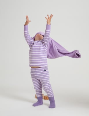 Polarn O. Pyret Girls Pure Cotton Striped T-Shirt (1-10 Yrs) - 2-3 Y - Purple Mix, Purple Mix