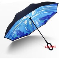 Popular and fashion double layer inside out reverse umbrella C shape handle inverted umbrella with logo prints