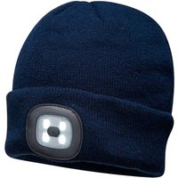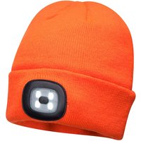 Portwest Beanie Hat and USB Rechargeable LED Head Light Grey One Size