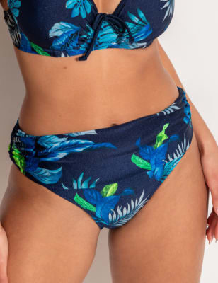 With their vibrant floral print, these Palermo bikini bottoms from Pour Moi are sure to make a splash. They're cut to a regular fit, with a ruched panel at the front that flatters the tummy area. The high-waisted design offers plenty of coverage and a retro-inspired silhouette.
