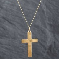 9ct Yellow Gold Diamond Cut Cross Pendant & 18 Inch Curb Chain Height: 37mm Width: 20.8mm Weight: 14.3g Pre-Owned Jewellery is a diverse collection made up of unique, one-off pieces. All of our items are assessed by our team of experts and we are constantly working hard to ensure we bring you the very best quality and value. Each piece also comes with our 12 month warranty for your peace of mind. Click here to view our entire Pre-Owned collection Alternatively, to make enquiries or view items in person please call or visit your local T.H. Baker store. Click here to find your nearest store