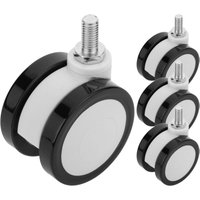 Primematik – pu&abs Medical Bed Swivel Caster Wheels One Way Brake and Thread Type Fastening M12x20, Black White 65x45x73mm 4-pack