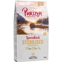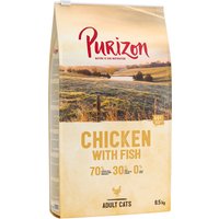 Purizon dry cat food takes its inspiration from the natural carnivorous diet of cats in the wild. This top quality, grain-free cat food contains 70% meat and fish, including lots of fresh meat from chickens reared in species appropriate conditions and freshly caught North Sea herring, as well as other highly nutritious ingredients. It has no added cereals or sugars. Instead of grains or rice, Purizon uses quality vegetables, fruit and herbs that provide your cat with important vitamins and minerals which can help to keep it in good health. Careful preparation ensures the vital nutrients are retained and the original flavour is preserved. Purizon dry cat food at a glance: 70% carefully selected meat and fish 30% fruit, vegetables and herbs Grain-free 44% protein content Rich in premium quality essential fatty acids omega-3 and omega-6 Carefully and gently prepared, naturally preserved No artificial preservatives, taste enhancers or colours Also for neutered cats: observe the feeding table for the ideal weight Lactose and gluten-free No added sugars Purizon: premium, sustainable cat food made only using natural ingredients of the highest quality. 70% finest meat fish, 30% fruit, vegetables, herbs, minerals, vitamins and 0% grain. Purizon is a premium complete dry food for kitten and adult cats of all breeds and sizes. More information about the individual varieties can be found here: Purizon Dry Cat Food