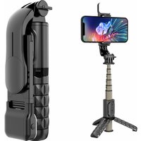 Q12 Mobile Phone Holder Tripod Extendable Aluminium Alloy Pole Live Streaming Selfie Stick with Bluetooth Remote Control - Pink