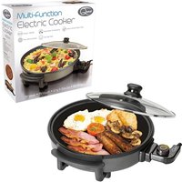 Cook up delicious stews, stir-frys and even full English breakfasts with this nifty electric cooker. Ideal for smaller spaces, it features a detachable handle which means you can place the cooker on the table to serve - great for family dinners at home or small areas like caravans. It's made from durable aluminium with a non-stick coating which ensures your food slides out effortlessly and makes the washing up quick and easy. Cool touch handles allow you to move the cooker without any problems, while an adjustable thermostat - which goes up to 240°C - allows you to cook your food at the absolute perfect temperature. It also has a tempered glass lid which lets you see your food as it's cooking so you know when it's just right. Features and Benefits Compact - Less hassle and less mess for small areas like caravans. Detachable power cable - Allows you to place the electric cooker on the table and serve. Durable aluminium with non-stick coating - Makes cleaning quick and effortless. Adjustable temperature dial - For perfect results on all sorts of different foods. Specifications 1500W Large, non-stick surface area Toughened glass lid Steam vent Cool-touch handle Adjustable temperature dial Aluminium with non-stick coating Dimensions: H11.5 x W42.5 x D41.5cm Guarantee: 1 year Colour: Black