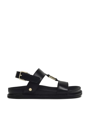These flat leather sandals by Radley London are a comfortable choice for sunny days. They feature a modern double-strap design, joined by a branded silver ring. The contoured footbeds are ergonomically shaped for comfort and support. Adjustable buckle fastenings around the ankles ensure the perfect fit.