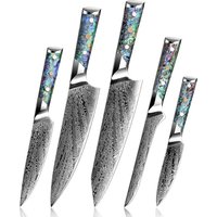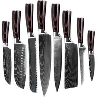 Red Resin Handle Stainless Steel Laser Damascus Pattern Blade Paring Santoku Nakiri Utility Boning Bread Knife Kitchen Knives