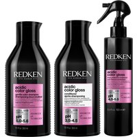 Redken Acidic Color Gloss Shampoo 300ml, Conditioner 300ml and Heat Protection Treatment 45ml, Glass-Like Shine