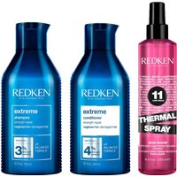 Encourage shine and strength with the Redken Extreme Shampoo and Conditioner Routine, expertly formulated for damaged-looking hair. Set Contents: Redken Extreme Shampoo For Damaged Hair 500ml This bestselling shampoo works to cleanse and nourish weakened strands to promote a stronger-looking appearance. The high-performance formula leaves hair feeling smooth and nourished, while encouraging a glossy shine. Redken Extreme Conditioner For Damaged Hair 500ml Ideal for damaged hair types, the strengthening conditioner helps to intensely nourish and moisturise each strand, leaving hair feeling smooth and supple.