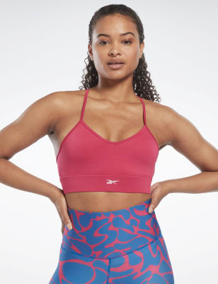 Enjoy your favourite workout in comfort and style with this super-soft Dreamblend sports bra from Reebok. This easy pull-on design is non-padded and non-wired for a natural shape. A v-neck adds a flattering touch, while distinctive branding on the underband offers a premium finish.