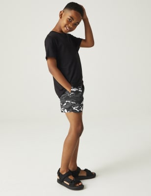 With its playful shark graphic, this Regatta rash suit is a fun choice for watery adventures. Both pieces are made in a comfy regular fit. The top has long raglan sleeves for good coverage, and a zipper at the back neck for easy dressing. Plain shorts-style bottoms complete the set.