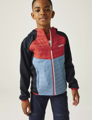Get kids warm and dry after a swim with this towel robe from Regatta. This regular-fit style goes on easily over the head and has a cosy hood for extra coverage. The wide short sleeves and hem vents make dressing easy. This piece is finished with a wave illustration and a 'Spirit Of Adventure, Regatta Great Outdoors' slogan on the front.