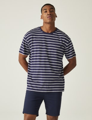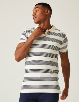 Regatta Men’s Agilno Cotton Rich Striped Half Zip Jumper – Navy Mix, Navy Mix,Light Blue Mix