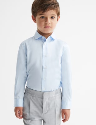 This shirt from Reiss will keep kids comfortably stylish on smart occasions. It's made in a slim fit from pure cotton fabric that's both soft and naturally breathable. A smart collar and classic button-through fastenings lend refined touches.