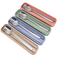 Reusable Portable Travel Wheat Straw Spoon Fork Chopsticks Set With Case Flatware Biodegradable Cutlery Set