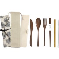 Reusable utensils portable travel black color titanium cutlery tableware set with knife fork spoon straw chopsticks brush