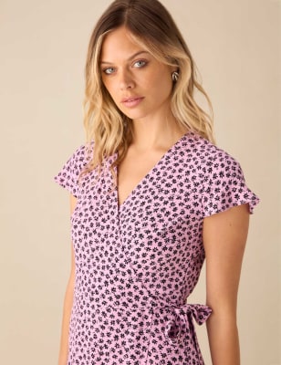 This waisted dress from Ro&Zo makes a striking choice for daytime occasions. It's cut in a comfy regular fit and has a bold floral print. The high neckline has a twist detail and a keyhole opening, while the short sleeves are puffed for an on-trend silhouette. A front split and a deep tiered frill bring feminine touches to the midaxi-length hemline.