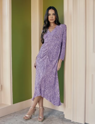 Elegant styling is effortless with this printed tea dress from Ro&Zo. It's made to a regular fit, with a flowing open-split skirt that falls to a midaxi length. The bodice features a flattering square neckline and shirring at the back for comfort. This piece is framed by soft leg-of-mutton sleeves that add to the romantic look.