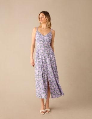 Create an eye-catching look in an instant with this Ro&Zo geometric print dress. This elegant waisted style is cut to a comfortable regular fit, featuring flattering long sleeves and a feminine v-neckline. Gathered detail through the middle of the skirt adds shaping to the silhouette, and the fabric flows to a midaxi-length handkerchief hem. The dress is complete with a discreet side zip fastening for a streamlined finish.