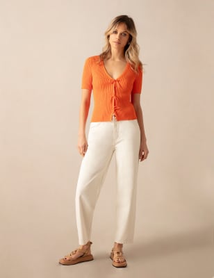 Ro&Zo Women’s Ribbed V-Neck Knitted Vest – Black, Black,Orange,Cream