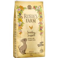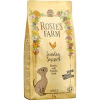Rosie's Farm Adult Sunday Supper with Chicken dry dog food at a glance: Gloriously 100% grain-free and easy to digest Top quality protein - 30% fresh chicken Complete dry dog food With energy-packed sweet potato Enriched with vital salmon oil, and herbs Very well-accepted With omega 3 6 fatty acids which can help to promote shiny fur and healthy skin No artificial preservatives, colour or taste enhancers Perfect for adult dogs of all breeds and sizes Crafted with care by a small family business Rosie’s Farm Sunday Supper with Chicken adult dry dog food is lovingly made with lots of protein-rich fresh meat and seasonal vegetables. We believe that your dog deserves to enjoy properly natural food, so Rosie’s Farm meals contain only top-quality meat – no rendered meat meal or other nasties. Just like the food you make at home, we don’t use any horrid chemical additives, fillers or fake flavour enhancers– only whole, natural ingredients treated properly to bring out their true flavour. All ingredients are gently cooked to provide your dog with a tasty, satisfying meal in every bowl. Plus, the splash of salmon oil helps keep your dog’s coat glossy and their skin supple. Spoil your dog with the traditionally tasty recipes just like you and your family enjoy together. This grain-free food is also kind to tummies, making it ideal for dogs with nutritional intolerances. Rosie’s Farm food is rounded off with a selection of delicious fruit veg, and will keep your dog’s tail wagging right through the day. There are lots of scrumptious Rosie's Farm dog food recipes for your dog to enjoy. Or why not try them all in this convenient Mixed Trial Pack 4 x 1kg: chicken, beef, salmon, lamb with 4 different varieties. Each one more delicious than the next. Rosie’s Farm: Food to fall for! Rosie's Farm dry dog food is available in 1kg and 12kg bags, as well as 2 x 12kg economy packs. And if your dog prefers wet food, or you like to mix and match, there is also a range of mouthwatering Rosie's Farm wet dog food to choose from. Click here for further information.