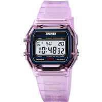 SKMEI 2056 Fashion Square Wrist Watch TPU Strap EL Backlight Electronic Watch – Transparent Pink