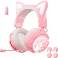 SOMIC GS510 Cat Ear Style Bluetooth Gaming Headset LED Light Wireless Headphone - Pink