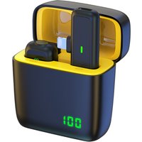 SX5 iOS Wireless Lavalier Microphone Cordless Lapel Clip-on Mic with Digital Display Charging Bin for iPhone - Black