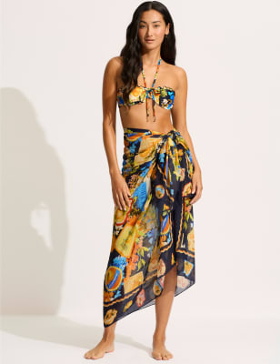 This pure cotton beach kaftan from Seafolly makes a light cover-up piece to layer over your swimwear. Its relaxed fit and short, wide sleeves give a floaty outline that's complemented by fringed tassels along the edges. A scoop neck and a mini-length hemline ensure a flirty finish.