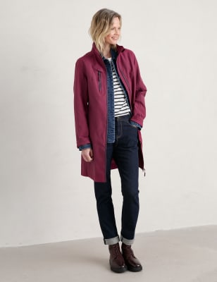 Seasalt Cornwall Women's Waterproof Cotton Rich Longline Raincoat - 10PET - Pink Mix, Pink Mix,Green,Navy,Teal,Natural