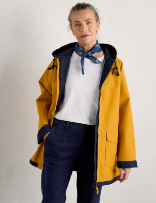 Bring a touch of cheer to rainy days with this colourful raincoat from Seasalt Cornwall. It's designed to a regular fit, with a zip fastening and an adjustable hood for extra coverage. This practical style is reversible, with one side printed and the other side plain. n Poppered pockets on both sides safely store those on-the-go essentials. Made from waterproof and windproof IMAGIN-TEX™ fabric and complete with taped seams, it provides reliable all-weather protection.