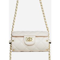 Ego Selena Clasp Detail Baguette Shaped Cross Body Bag In Black Faux Leather, One Size -Give your everyday look a serious update doll. Featuring a black faux leather material, with quilted detailing, a chain strap, in a baguette shaped cross body design.