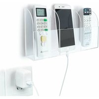 Size is 9.5x3x10cm. The gap at the bottom of the remote control holder is convenient to hold a charging mobile phone. Perfect for placing air conditioning remote control, TV remote control, mobile phone, pen, key etc. Easy to Install - the storage box has a self-adhesive design, no need to drill out the screw attachment. Peel off the protective film, and stick the storage box on a smooth surface, such as mirrors, tiles, stainless steel, etc. You can stick it on flat walls, bedside desks, bathrooms and countertops. Specifications: Material: ABS material Packing: opp Color: yellow/green/blue/white/pink Product size: 9.5*3*10cm