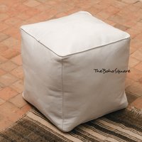 Set Of 2 Handmade Hand-Stitched Moroccan Pouf, Genuine Leather Ottoman, Round Moroccan Pouffe, Silver Color Instead of only one pouf Get Yourself Two at The Best Price Online!! This luxe leather Moroccan Pouf is the perfect addition for those wa...